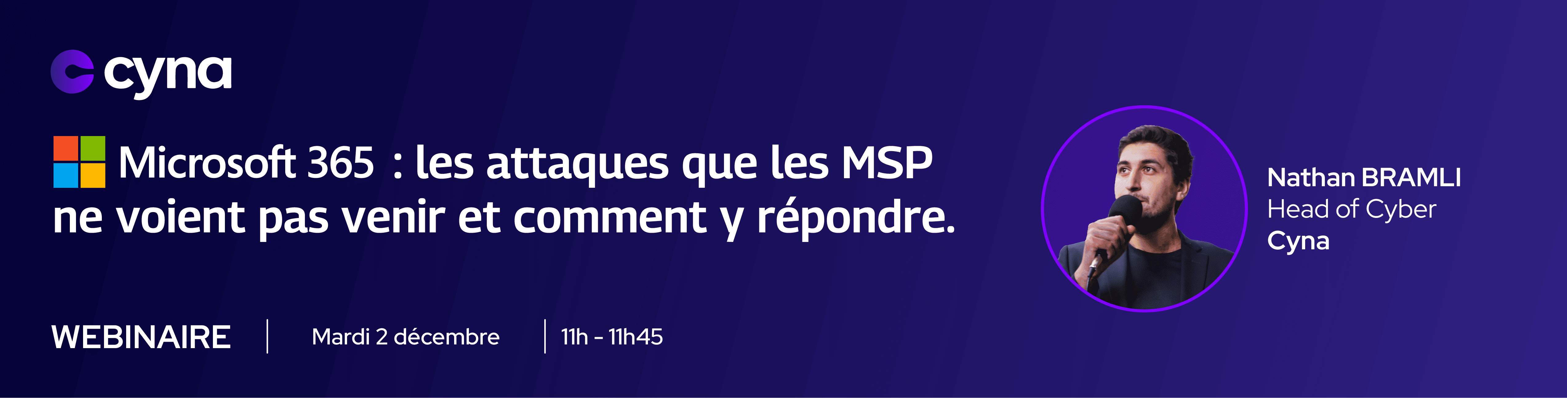 Nathan Bramli, Head of Cyber chez Cyna, partagera ses retours d’expérience inédit sur des attaques réelles passées par M365. Il ne s’agit pas de théorie, mais de démonstrations et de cas d’usages précis pour identifier les vulnérabilités de vos clients.